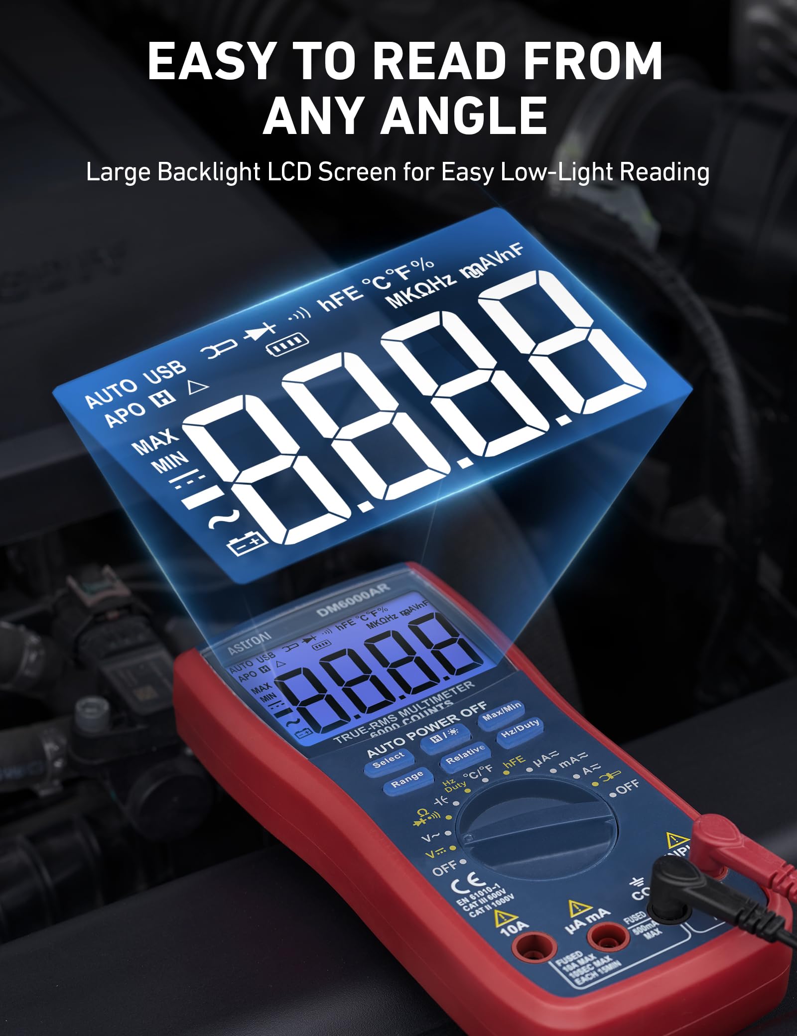 AstroAI Digital Multimeter and Analyzer TRMS 6000 Counts Volt Meter Ohmmeter Auto-Ranging Tester; Accurately Measures Voltage Current Resistance Diodes Continuity Duty-Cycle Capacitance Temperature