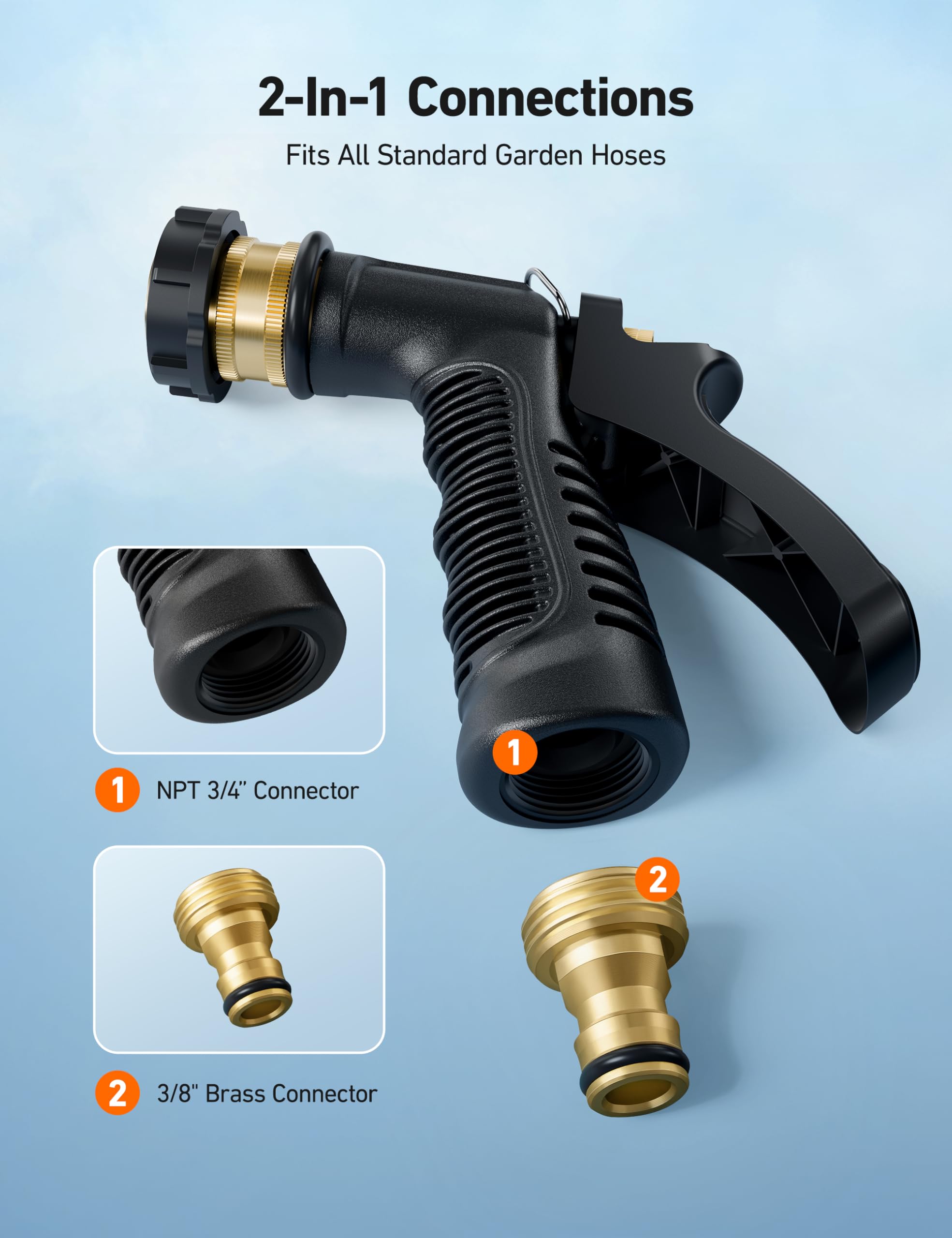 - Easy to Connect & Use: The 3/4” universal garden hose connector and 3/8" brass connector easily connects to any garden hose to quickly and efficiently clean your car
