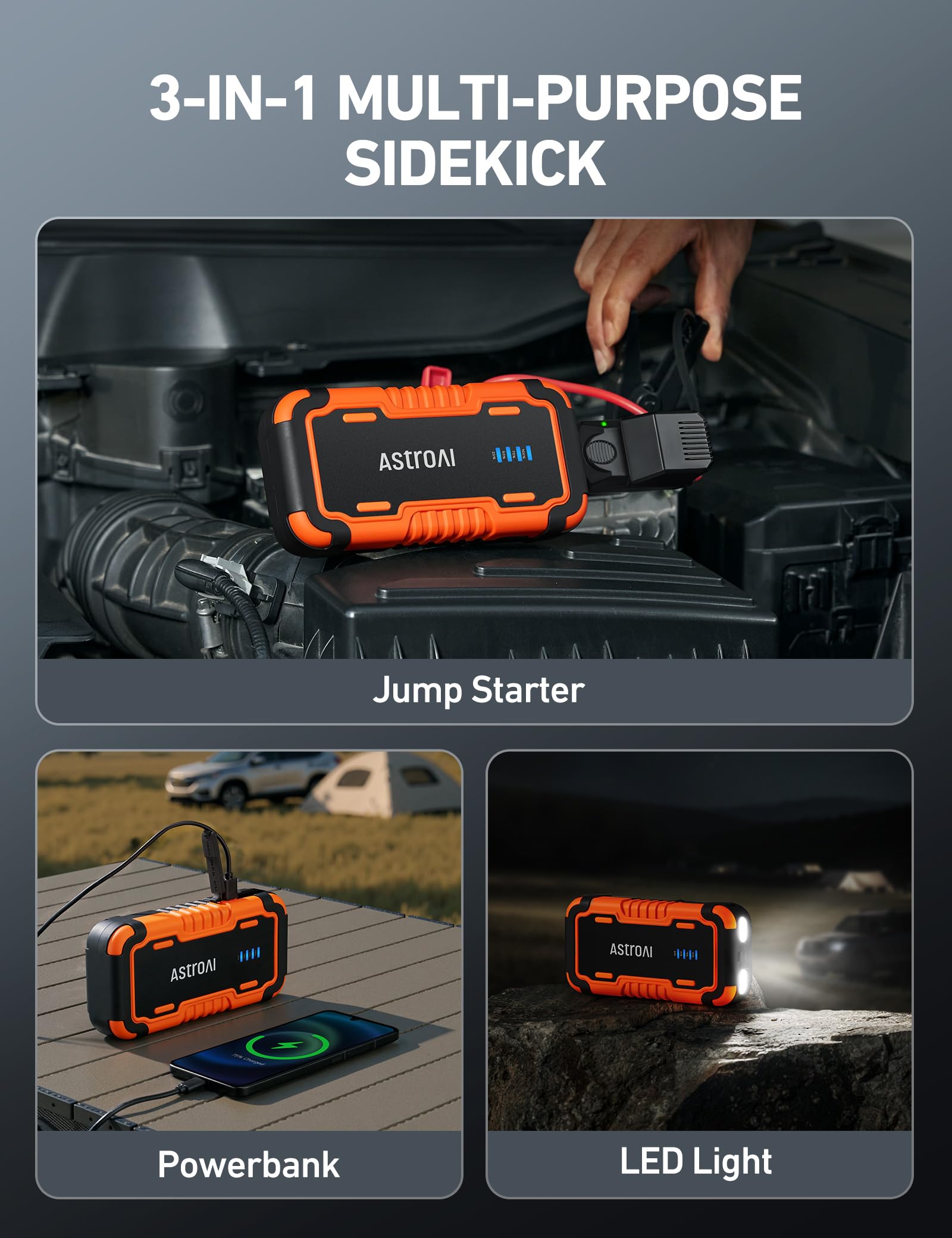 AstroAI P10 Car Battery Jump Starter, 5000A Portable Jump Starter Battery Pack for Up to 10L Gas & 8L Diesel Engines, 12V Lithium Jump Box, Auto Booster Pack with 3-Mode LED Lights & Jumper Cable