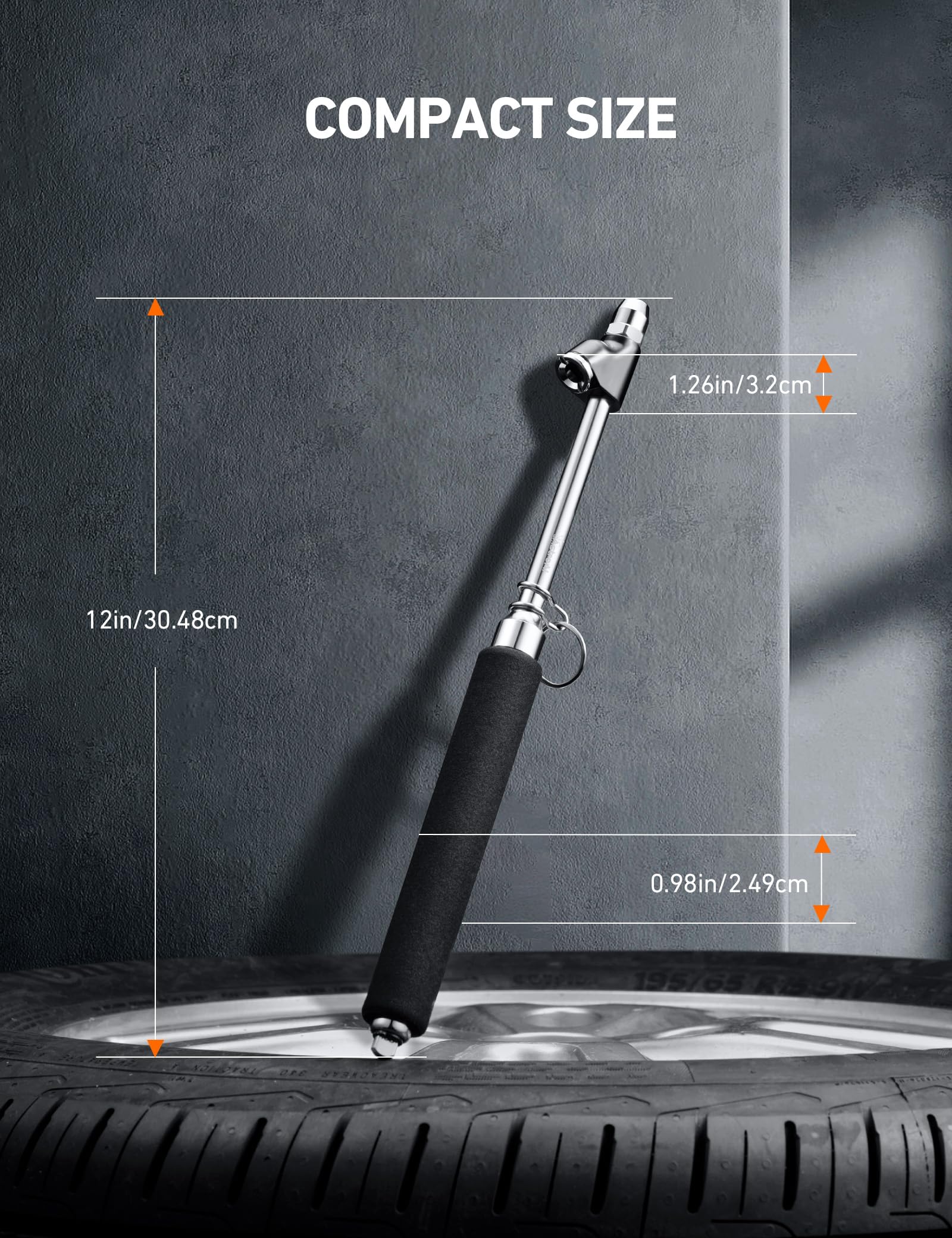 - STAINLESS STEEL components prevent rust and corrosion; Crafted to create a great seal around a tire's valve stem, non-slip handle provides free use even in cold weather, reinforced bi-directional push-pull (dual) head design